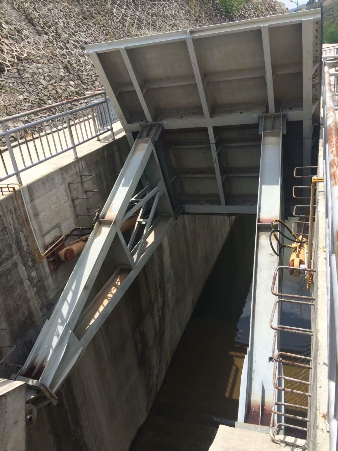 弧形鋼閘門系統采用液壓缸驅動,壩體坍塌可完全擱置在地板上,不堵水。當水被阻塞時,擋水板由閘門后面的支撐框架支撐,氣缸返回活動柱塞,從而有效地保護柱塞免受腐蝕。這種新型門結構獲得了國家發明專利。弧形鋼閘門是目前設計合理的閘門之一。安裝、操作和操作方便。可自由調節水的高度。它不受河流寬度、地理和氣候條件的限制。使用壽命長達50年。